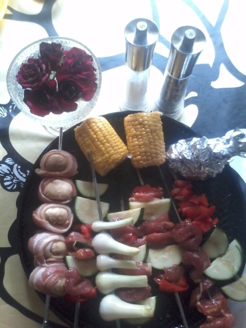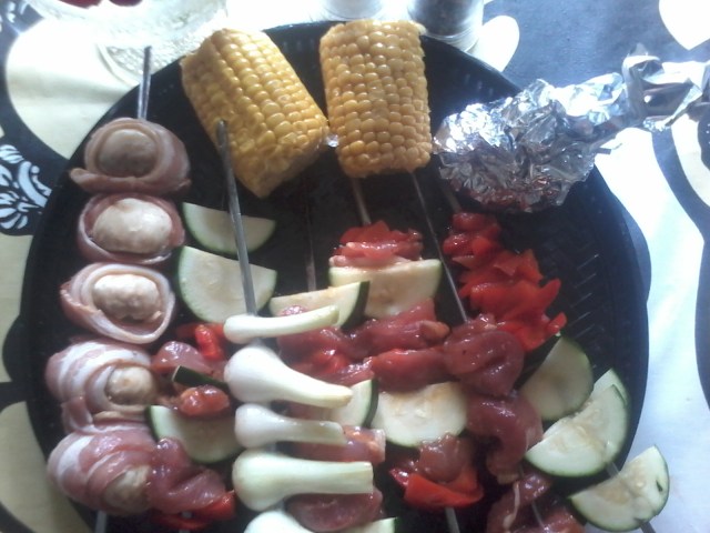 Voitele Grillaus kastikkeella aina silloin tällöin Grillauksen aikana, Kaikkia vartaita. Minä katselen kellosta milloin aloitin, ja millon seuraavaksi tarkastan tilanteen ja käännän, voitelen tarvittaessa.