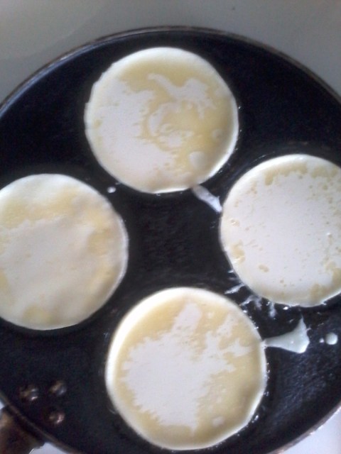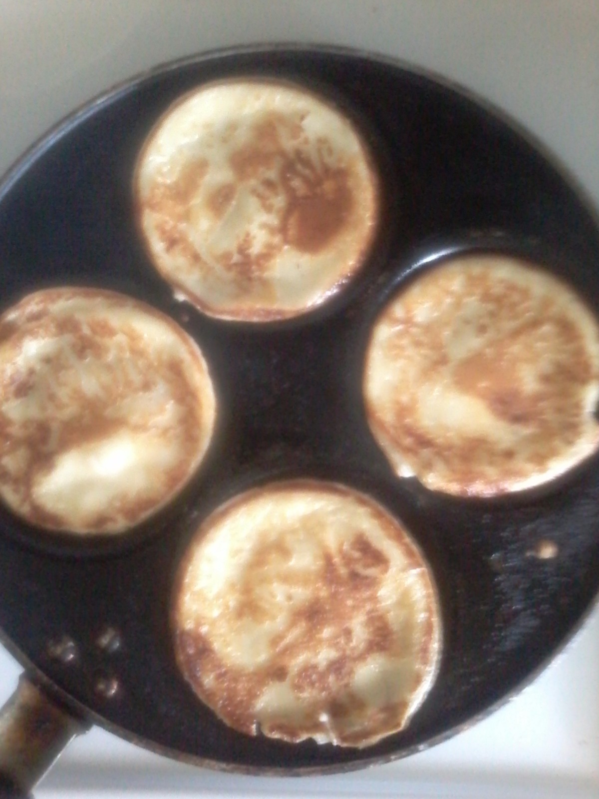 Minulla on käytössä vanha ja paljon käytetty Teflon lettupannu, jossa voi paistaa 4 pikkulettua.