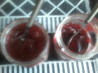 Vanilja jäätelöä. Mansikka ja vadelma HILLOA.