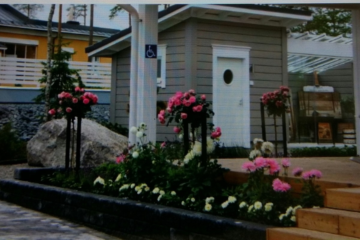 Viehöttäväpiha, jossa erilaisia Perennoja ja istutuksia, istutuslaatikoita ja kävelykivetyksiä. Boggaajat yöpyivät.