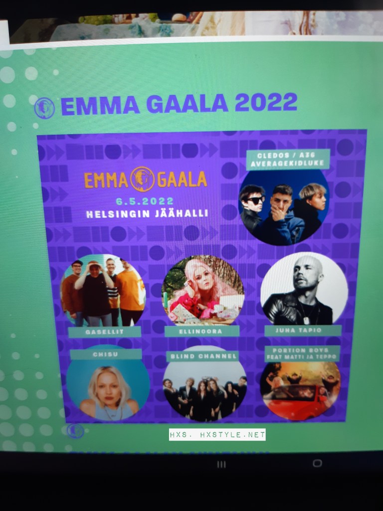 KULTTUURI. MUSIIKKI Suomalainen eli Kotimainen Musiikki. UUTISET… TV Nelonen LIVE. EMMA GAALA ja Palkinnot 2021: Rita BEHM 7 Emmaa ja 4 Iskelmä palkintoa… ISKELMÄ palkinnot…Musiikki videot. EUROVISION/ EUROVIISUT 2021 Amsterdam, Tulossa YLE TV1. 17.5.2021. SUOSITTU 82….59 Tykkäystä. LIFESTYLE/Elämäntapablogi HXS. HXSTYLE.net