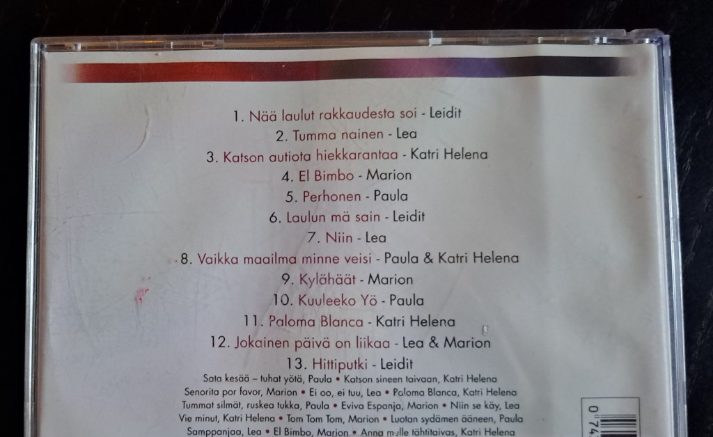 mm. Elämältä kaiken sain, Aamu, Mennään Rööberiin, Saat miehen kyyneliin, Sinua Sinua Rakastan…