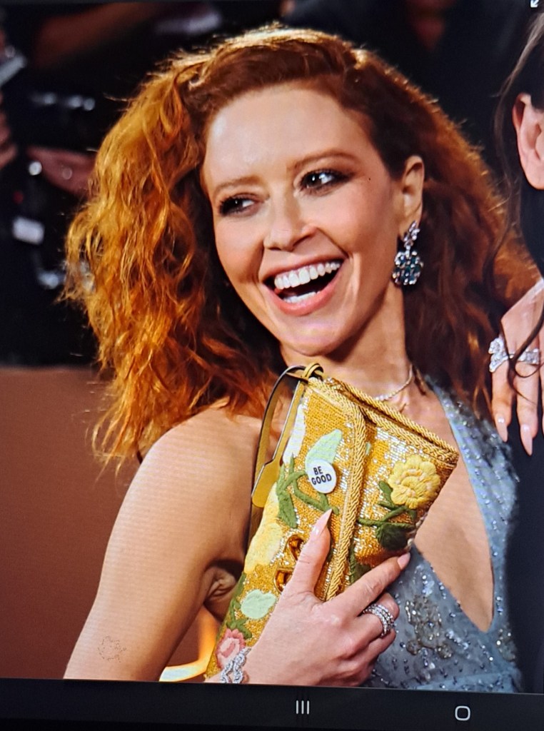Jessie Buckley in DIOR. Simple Dress and Pretty Fambric.