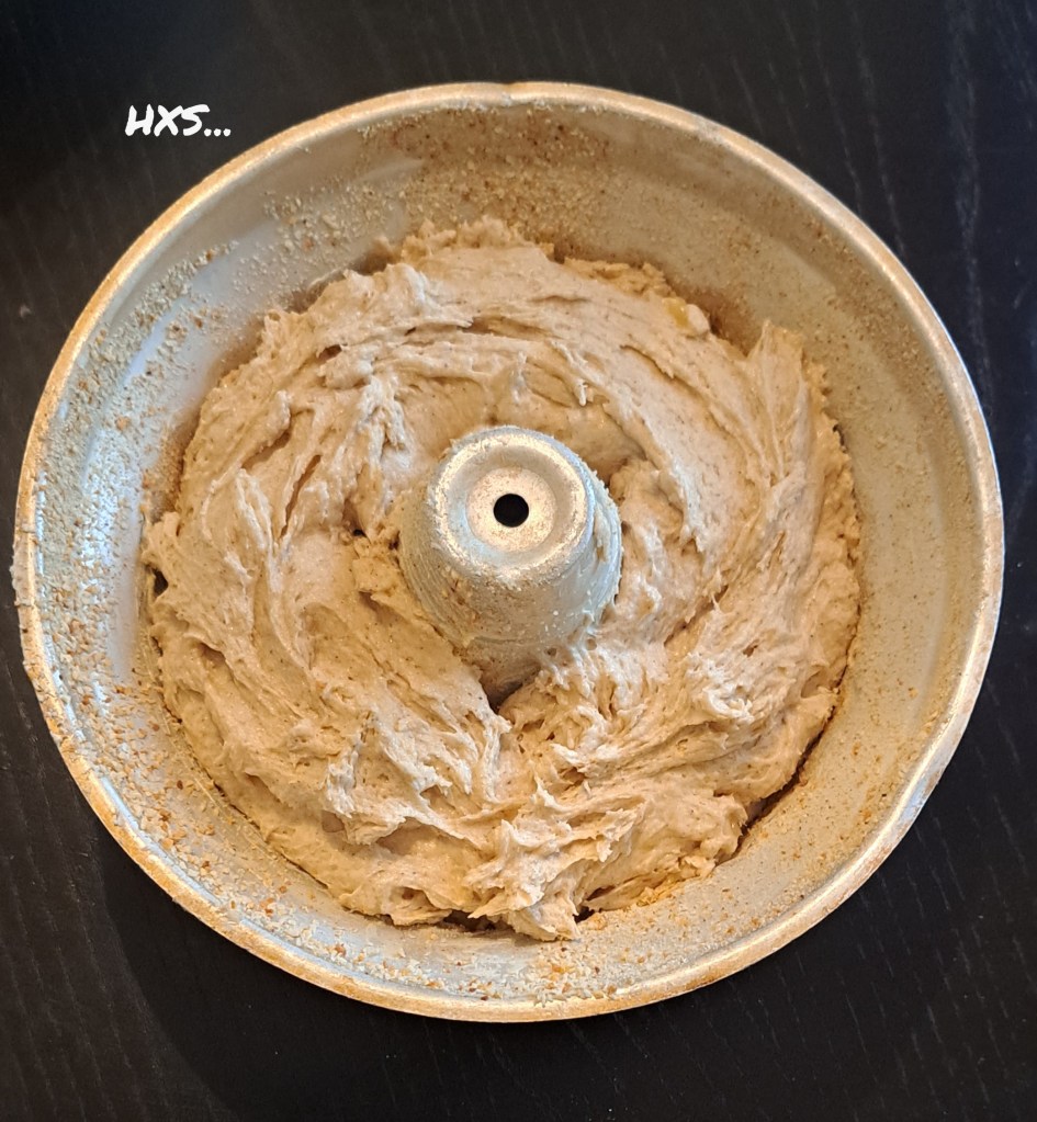 Nostele valmis kakkutaikina TASAISESTI kakkuvuokaan.