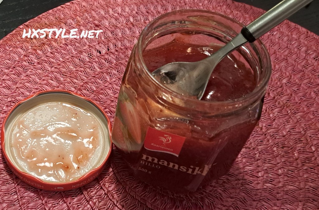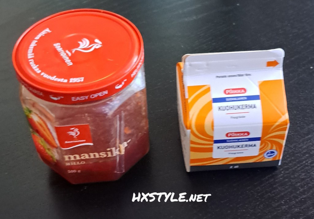 Kuvassa vanilja Kermajäätelöä ja Mansikka hilloa.