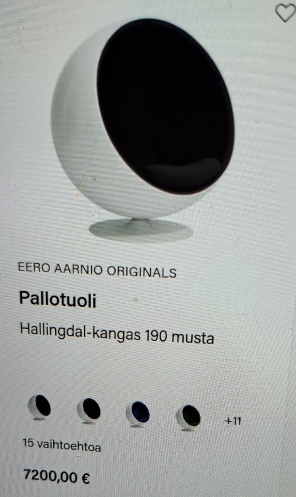 Olen muistaaakseni istunut NUOREMPANA aiemmin, toisessa kirjastossa PALLOTUOLISSA. En muistanutkaan miten mukava, omassa rauhassa ja Suojassa tuolissa saa istua. ÄÄNET jäivät tuolin ulkopuolelle….