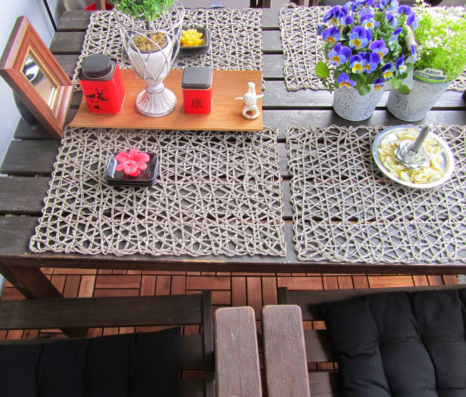 MYÖS Kesä aikaan TERASSI ja Ruokapöytä ja penkit tarvitsevat, Sisustustekstiilejä, kasvien ja kukkien lisäksi. Mm. TUOLINPÄÄLLISET ja pehmusteet, Peitot ja viltit. KATSO lisää Puutarha jutuista.