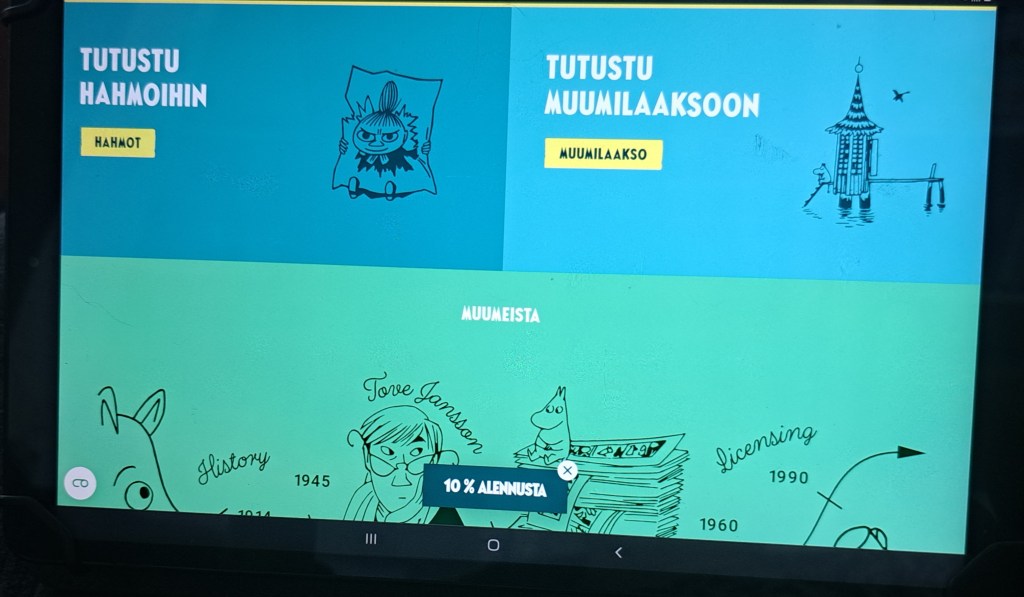 Upeat, mielenekiintoiset ja Tunnelmiltaan vaihtuvat tilat…Avarat ja hienot tilata ja MUUMIT Hyvin ja Näyttävästi esillä.